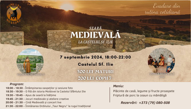 3. Seară Medievală sub clar de lună – evenimentul se va desfășura sâmbătă, 7 septembrie, în satul Cărbuna la Castelul Sfântului Ilie. Programul sărbătorii va conține: